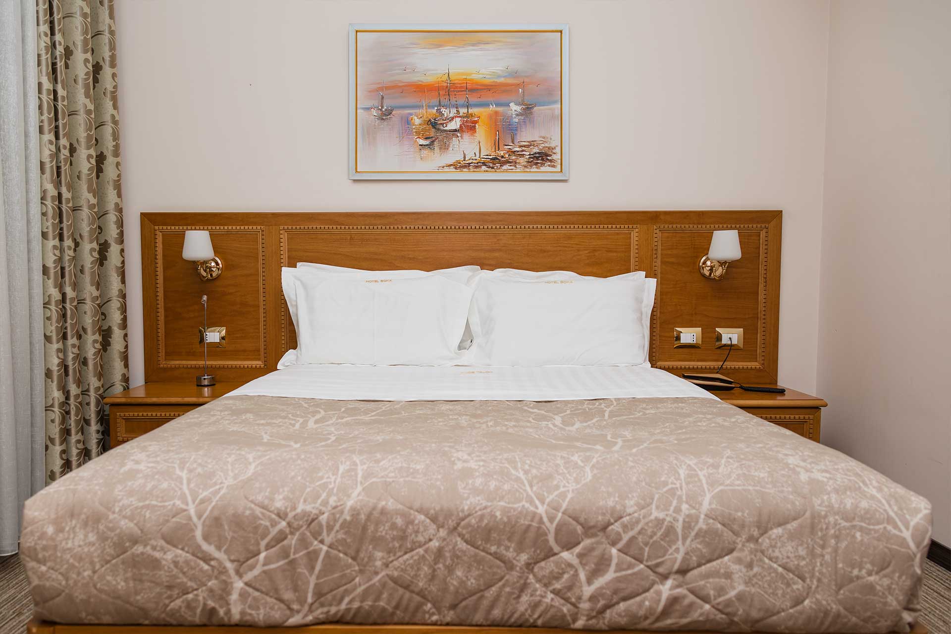 Discover our Double Room with Balcony, featuring slippers, a hairdryer, and a business desk for your convenience. Relax with a captivating cityscape view from your private balcony, and unwind with complimentary WiFi and entertainment on the flat-screen TV. Treat yourself to minibar offerings, savoring the ideal blend of comfort, leisure, and a mesmerizing city view