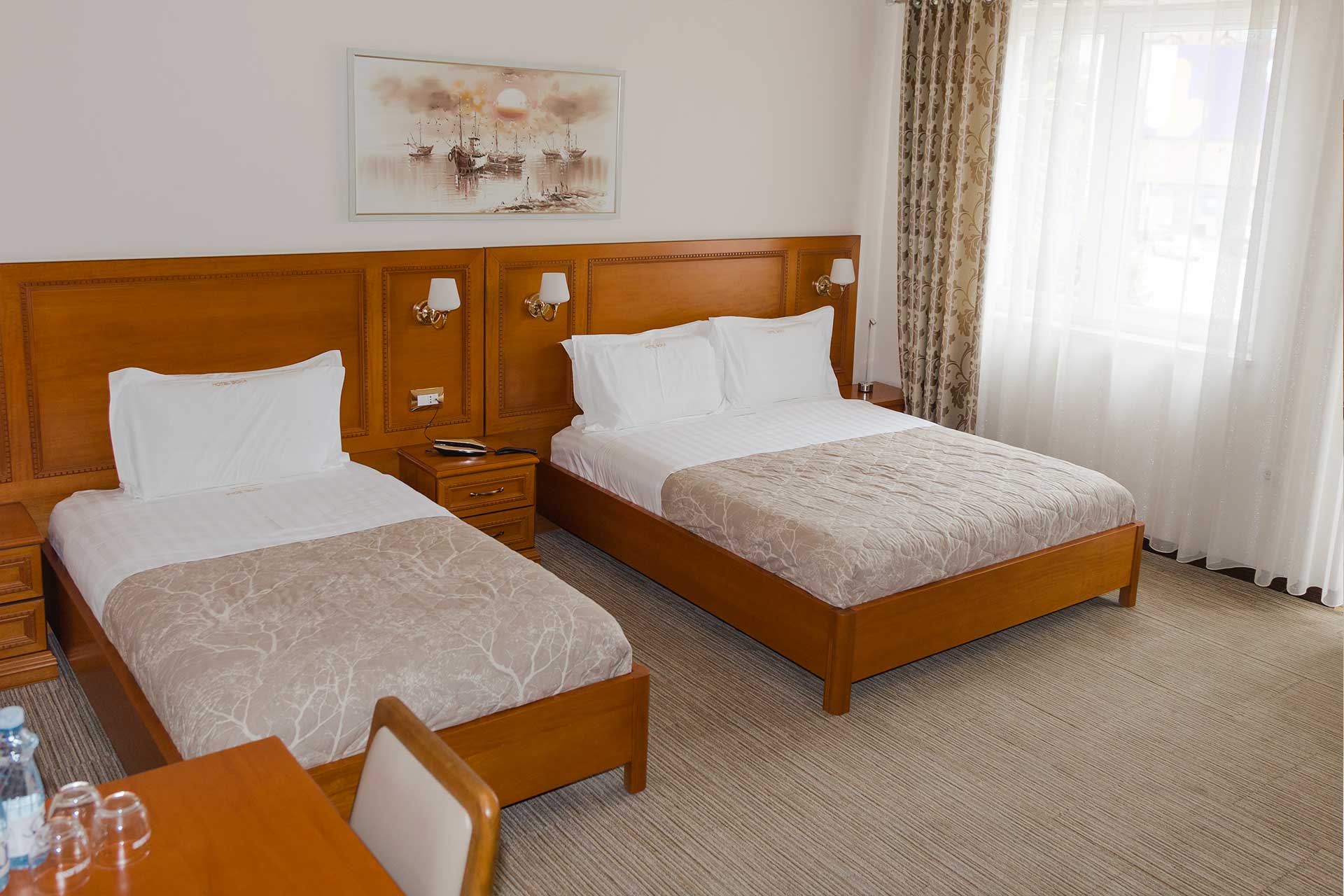 Experience comfort and convenience in our Family Room City View, thoughtfully designed for your loved ones. Unwind with 1 double bed and 1 single bed, stay connected with complimentary wifi, and enjoy entertainment on the flat TV screen. Embrace the thoughtful amenities: slippers, a hairdryer, and a well-equipped business desk. Indulge in refreshments from the minibar as you savor the breathtaking city view. The perfect choice for your family's ultimate retreat.